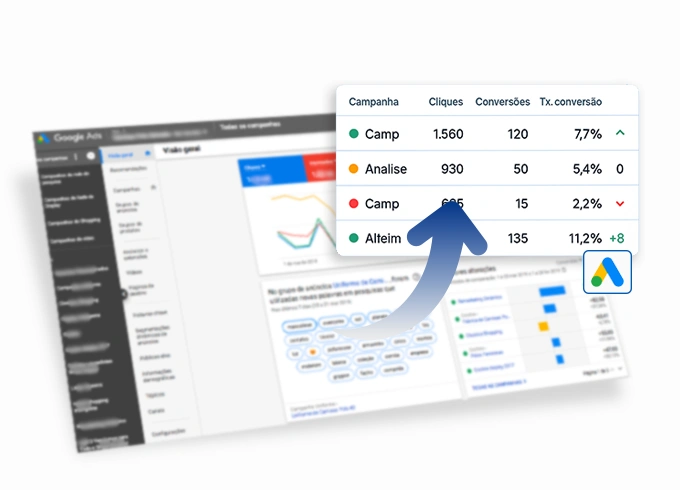 ✅ Analise por palavra-chave, anúncio ou origem do tráfego.